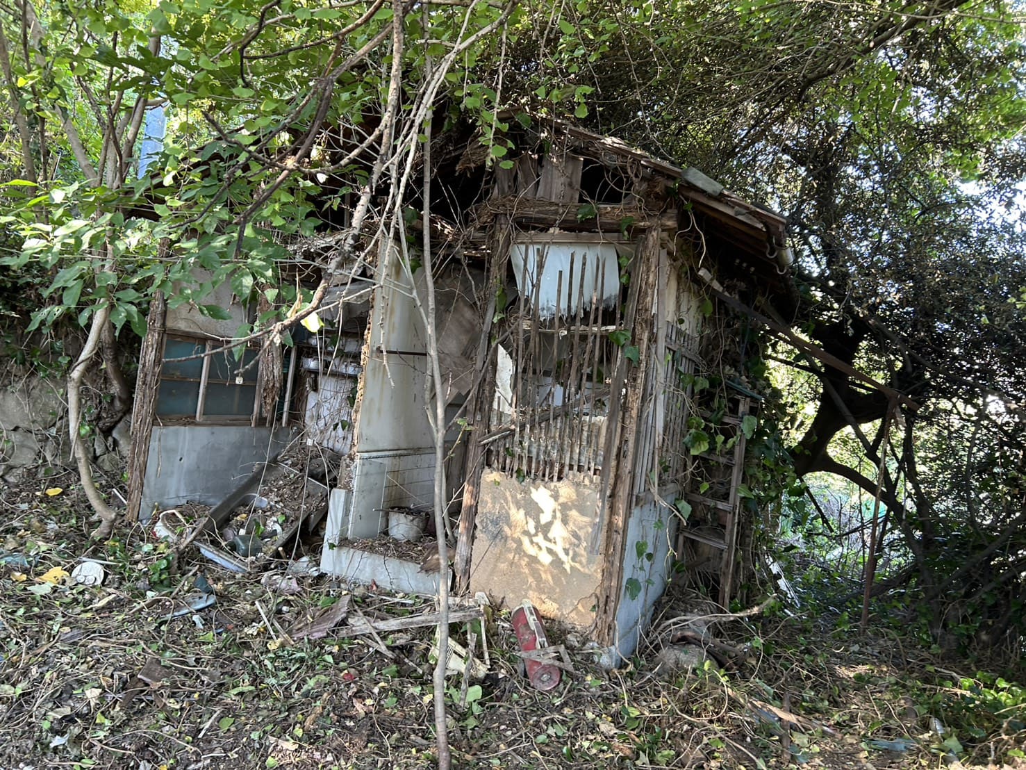 土地の場所は大体はわかりますが、境界もよくわからず、納屋の内外に残置物もあります。