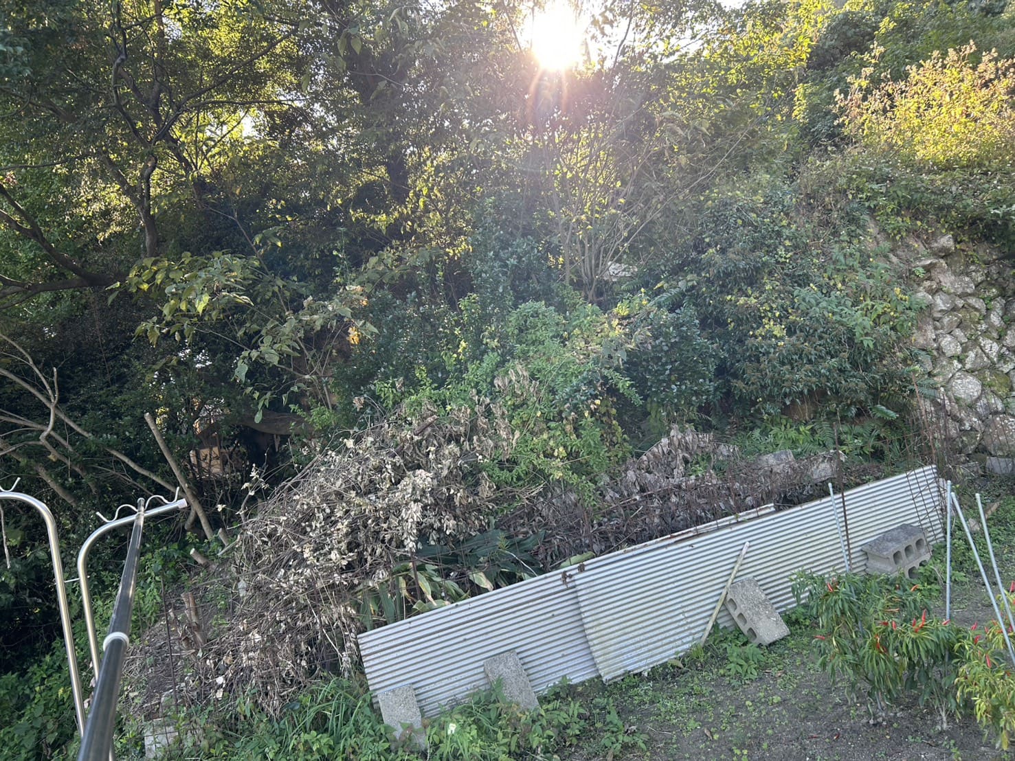 付近には民家や住宅もあるエリアで、段々畑のような土地の一部です。