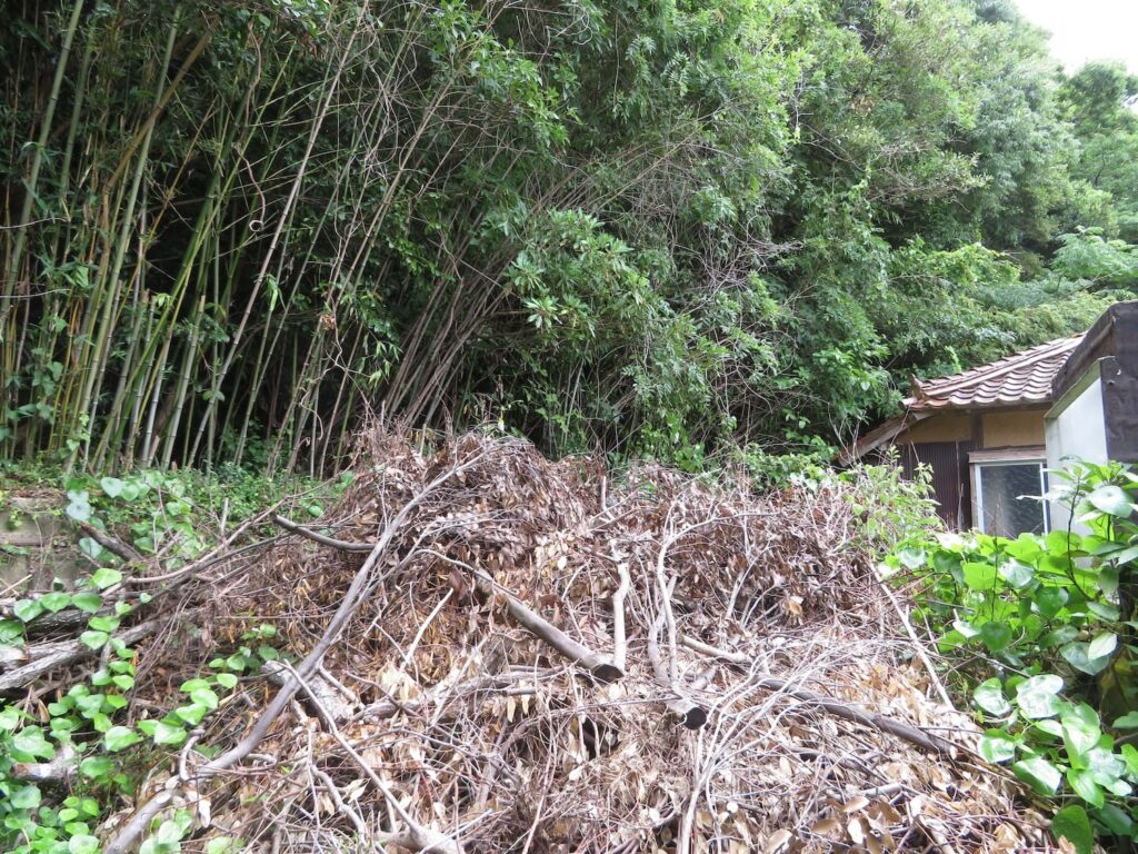 ・納屋に残置物(主に木材など)あります。人力籠と思われるものもあります。