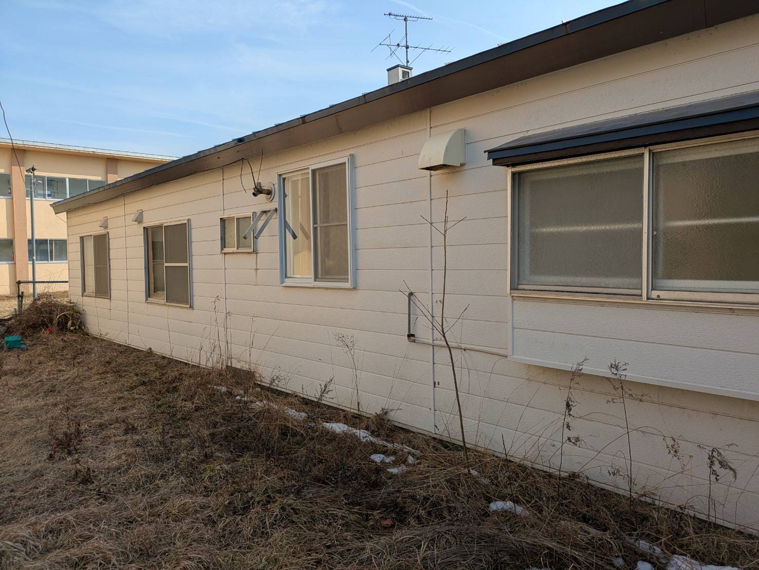 JR室蘭本線「鷲別駅」から車で4分、徒歩圏内にスーパーマーケットがある鷲別中学校裏に建つ平家が0円
