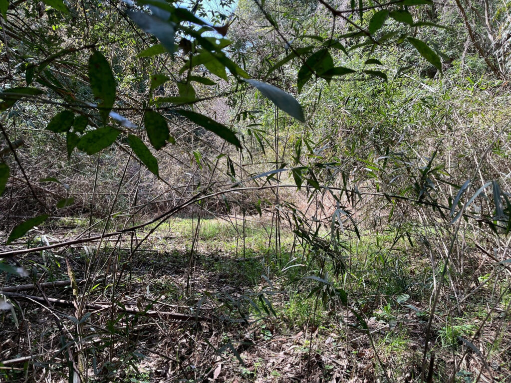 土地の境界線は概ねなんとなくわかりますが、境界標の有無は不明で、隣接地所有者との境界確認も未実施です。