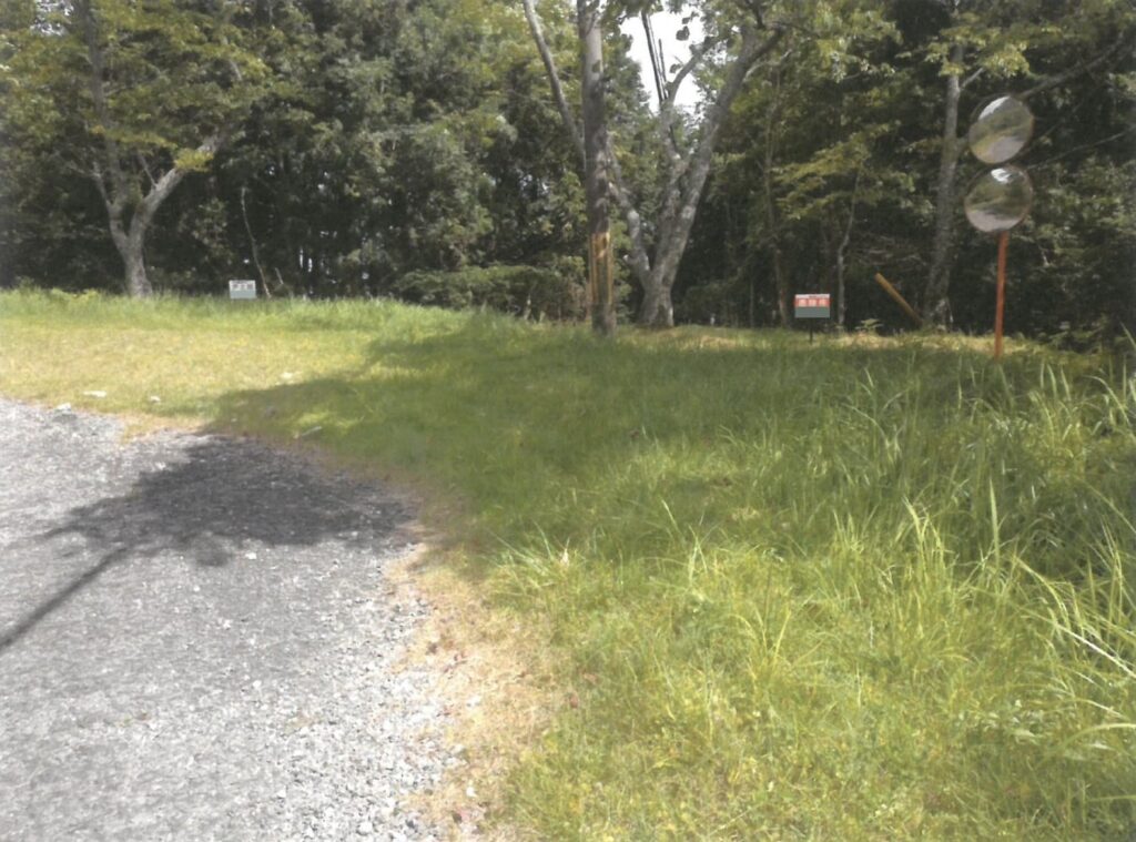 管理会社の管理道路に面した部分のみ平地で、残りの土地は道路から下る傾斜地になります。