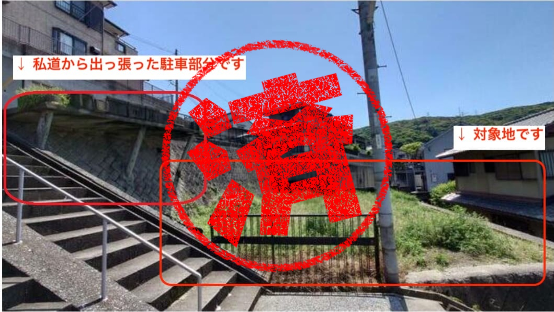 通路となる「階段」部分は、自由に往来できる状態であると説明を受けて取得しておりますが、階段部分地権者との書面の取り交しはございません。
