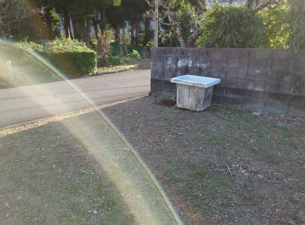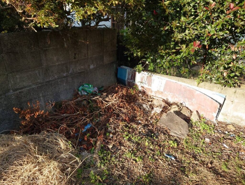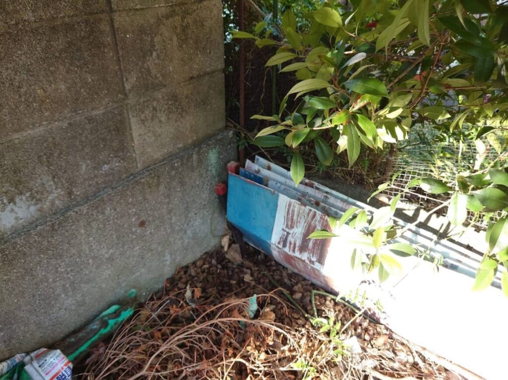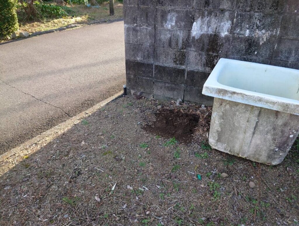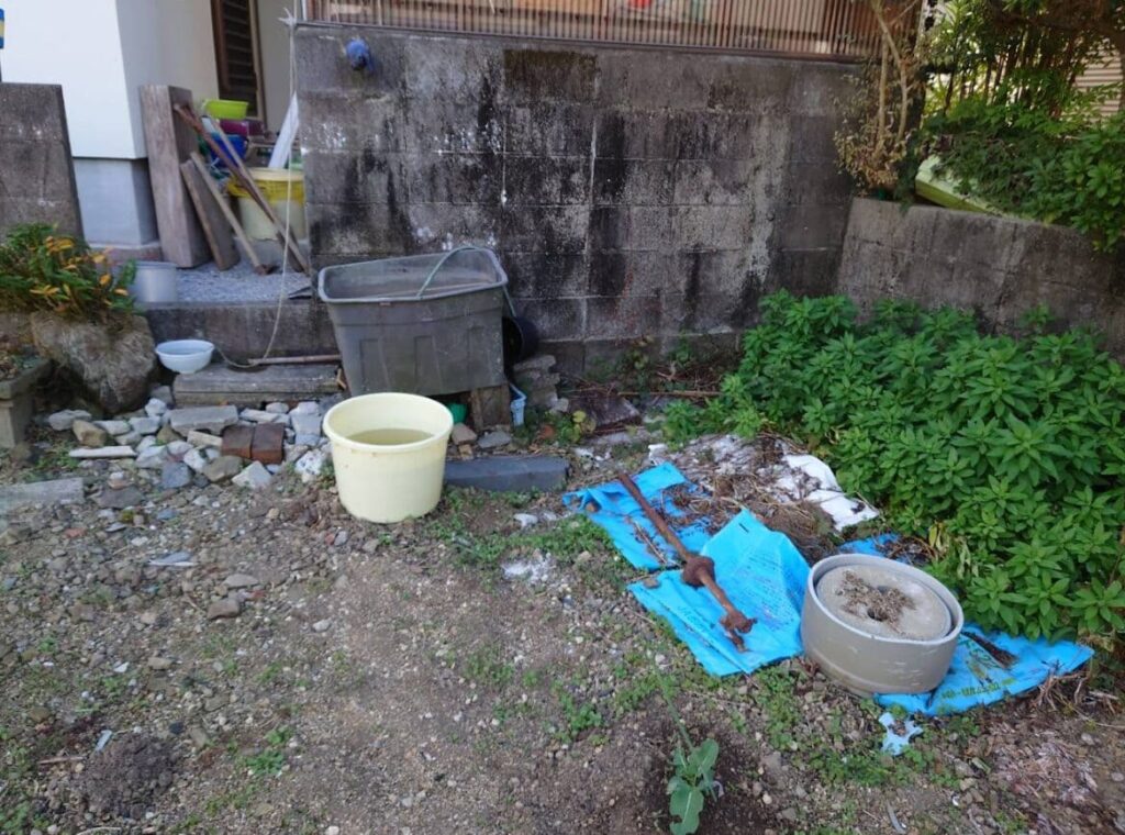 2024年12月に現地に行ってきたところ、桶や枯れ草などの残置物が少しありました。