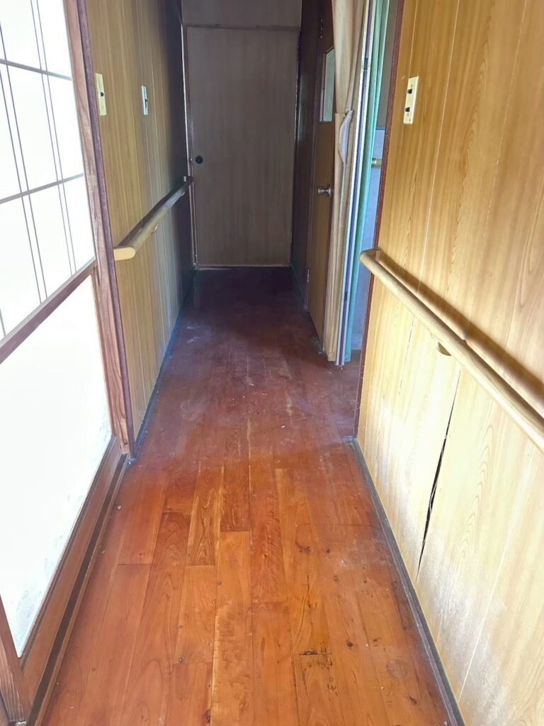 室内の整理は終わり、大きな木材の家具のみ残っています。